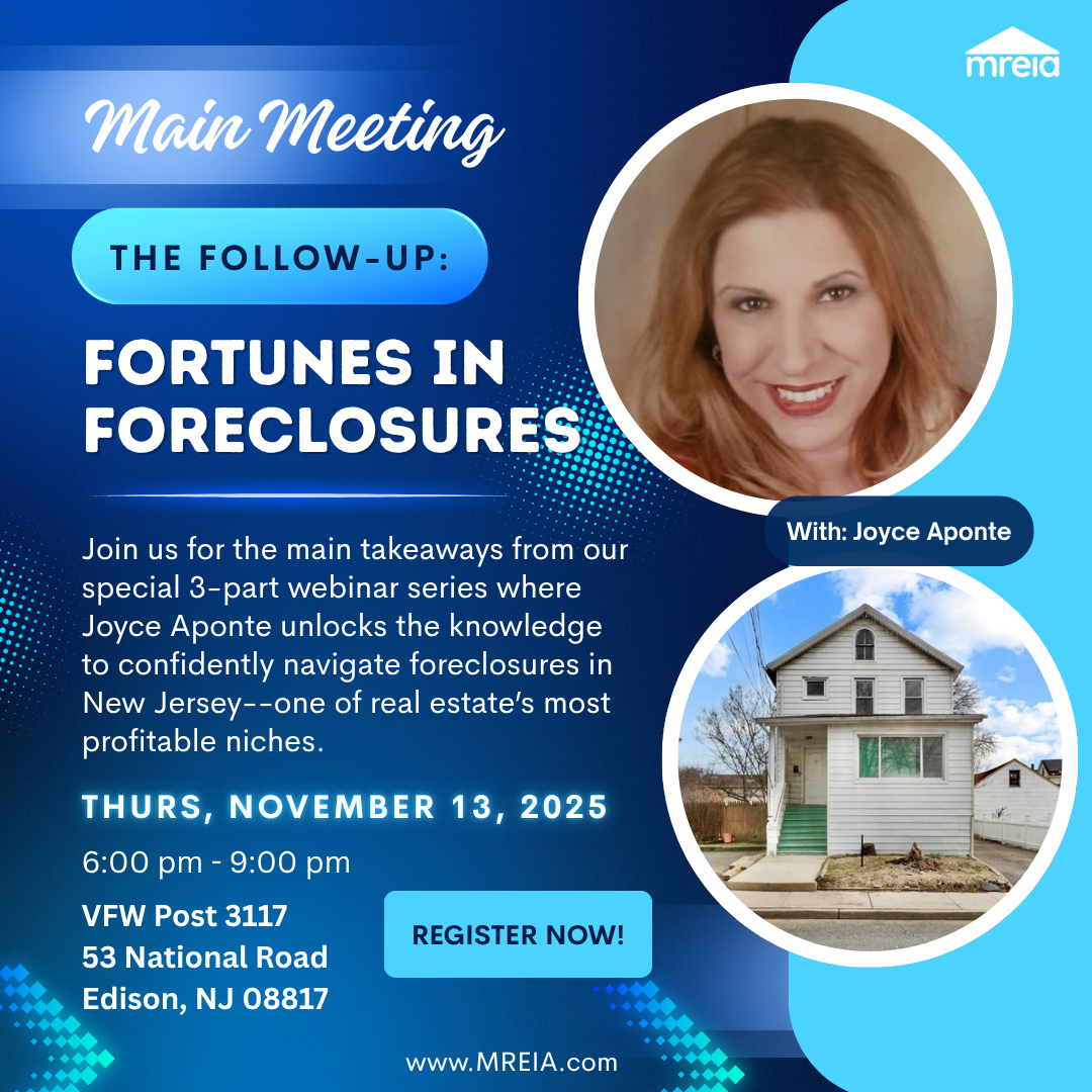 MAIN MEETING: THE FOLLOW-UP - FORTUNES IN FORECLOSURES, THURS, 11/13/2025