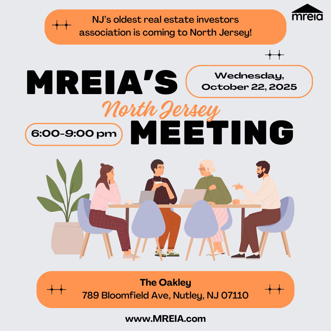 MREIA is coming to North Jersey! We are so excited and proud to launch a 2nd Live Monthly Meeting in Nutley, NJ. Join us to learn how MREIA, NJ's oldest real estate investors association can help you in your real estate investing journey!